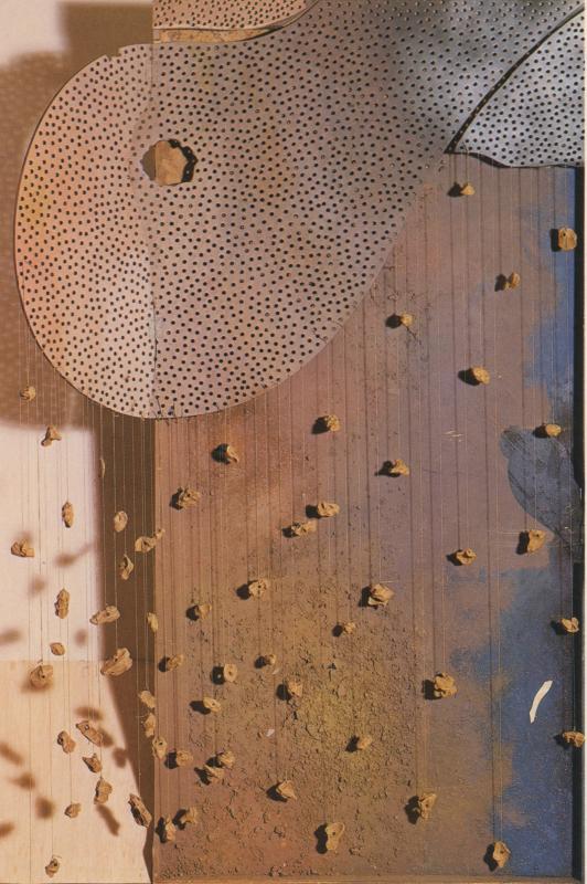 • 1981. Paisatge amb palla. Collage sobre tela 146 x 114 cm. Col路lecci贸 Museu Reina Sofia, Madrid (P煤blic)