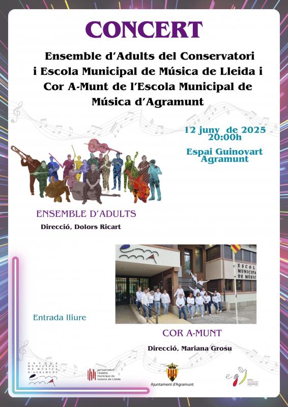 El dijous 12 de junt a les 20 h, L’ Essemble d’ Adults del conservatori i l’ escola Municipal de Música de Lleida i Cor A-Munt de l’ Escola Municipal de Música d’ Agramunt ens han escollit, tal com vàrem fer en el 2022, per seduir-nos amb dos meravellosos concerts a l’ Espai.