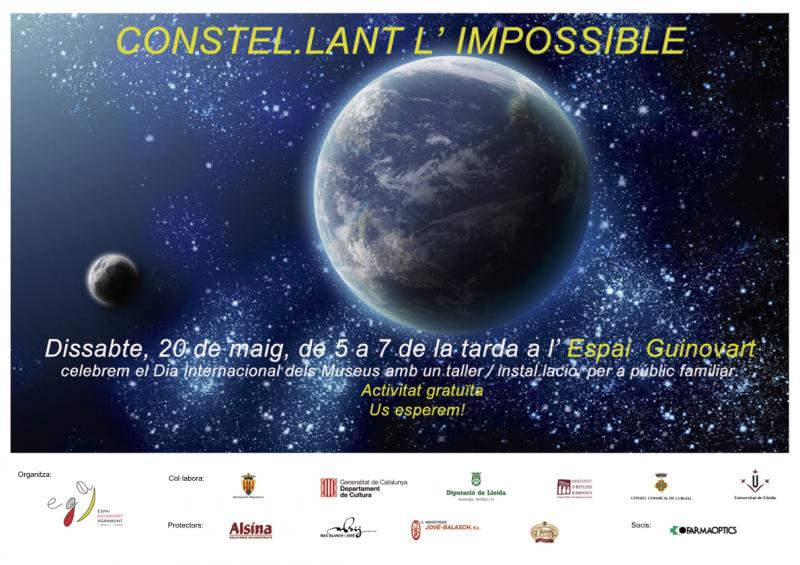 Des de l’Espai Guinovart us convidem a participar del taller – instal·lació “Constel·lant l’impossible” que organitzem per a celebrar el Dia internacionals dels Museus, el proper dissabte 20 de maig, de 17 a 19 h a la plaça del Mercat d’Agramunt.