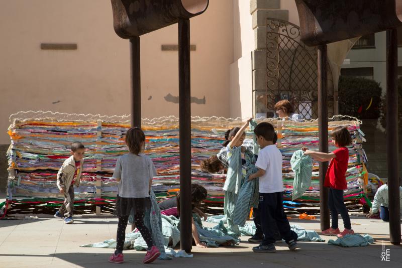 Aquesta creació sorgeix d’ una proposta conjunta dels Serveis Educatius de l’Espai Guinovart i l’aula Guinovart de l’ Escola Macià-Companys d’Agramunt per commemorar el desè aniversari de la mort de Josep Guinovart, i pretén sumar i aportar noves tècniques i experiències artístiques als escolars. És una instal·lació que parteix de la referència als tapissos de Josep Guinovart, el qual participa del moviment de renovació del nous llenguatges artístics al 1970. Els/les alumnes utilitzaran materials que ha quedat oblidats o en desús a l’escola, i tal com feia en Josep Guinovart els transformaran en una obra artística.
