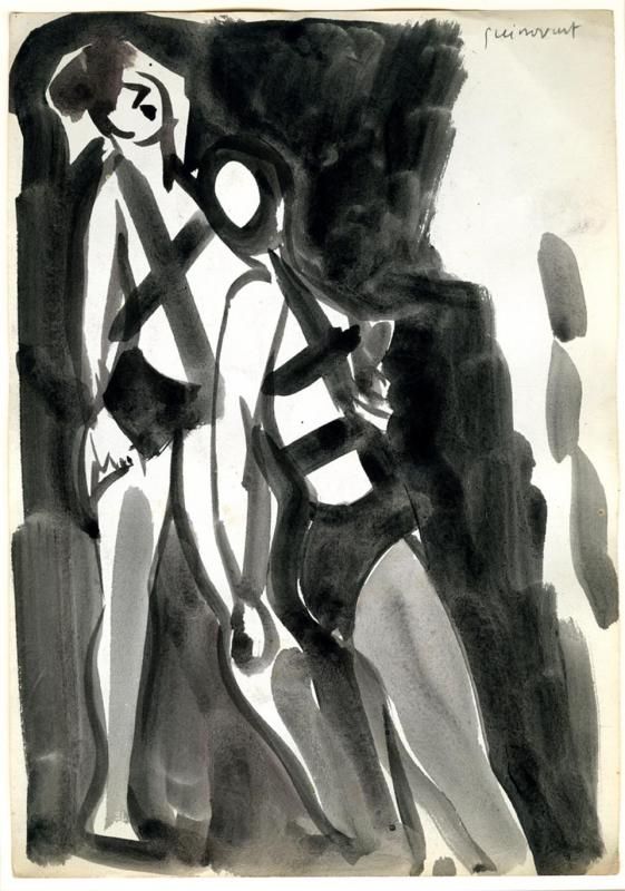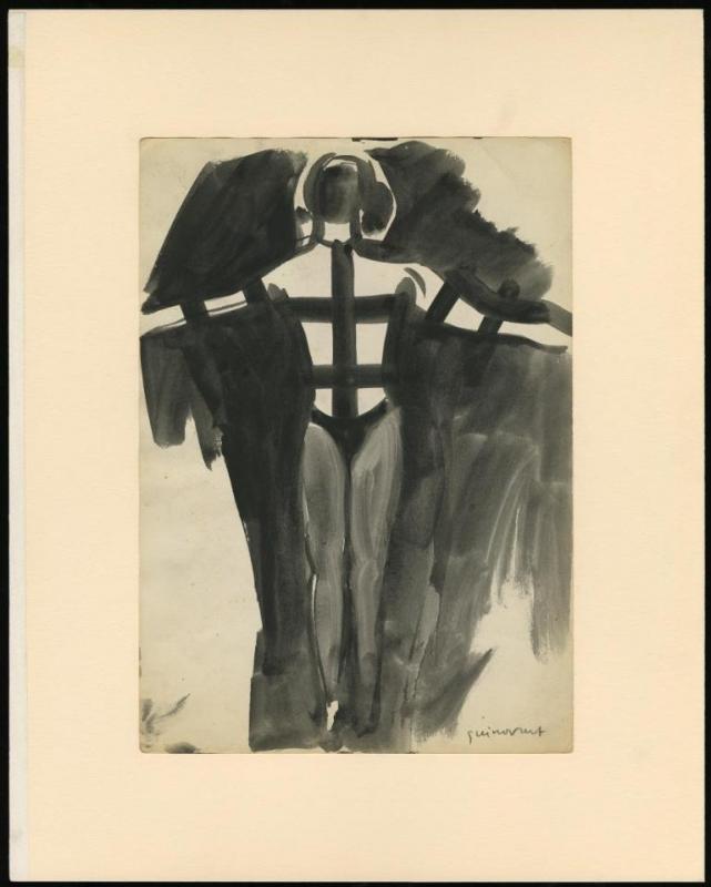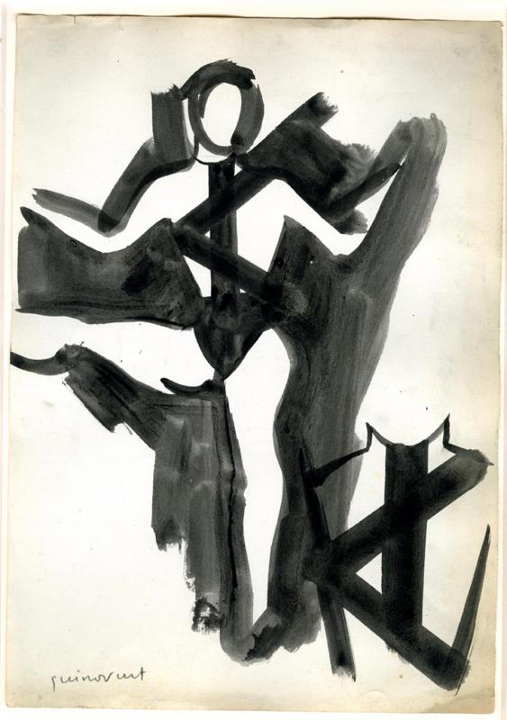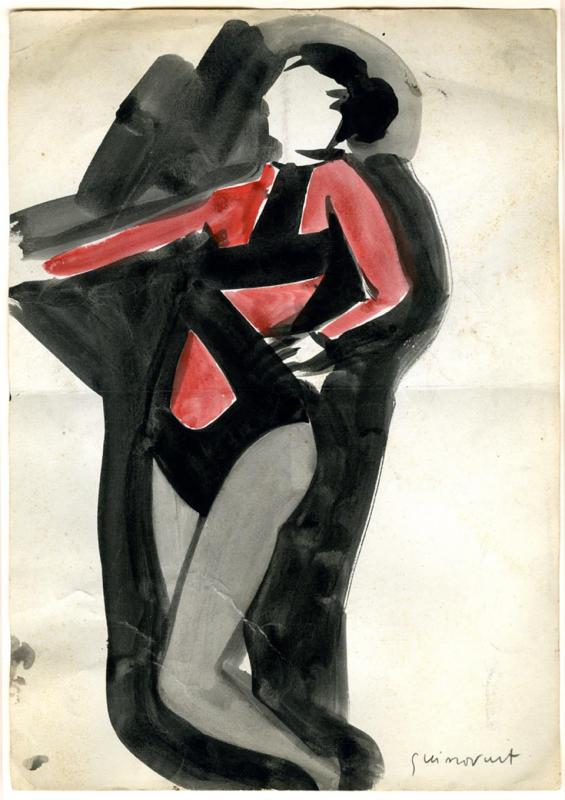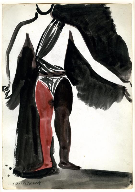 13 Figurins en paper i aquarel·la 25x35 cm i 2 figurins en paper i carbó 23x32 cm.
