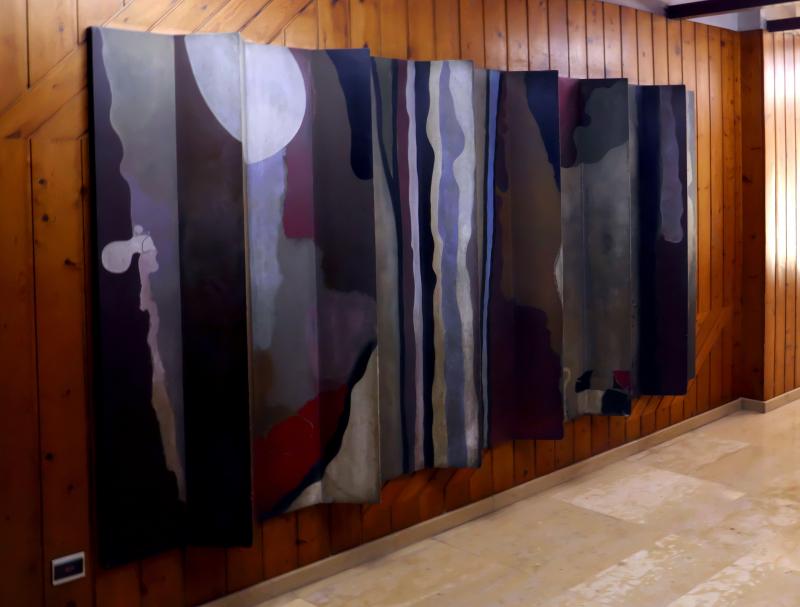 Mural format per un total de 7 plafons. Sis d’ells de 307,5 x 84/86 cm , i un de 307,5x 23 cm.