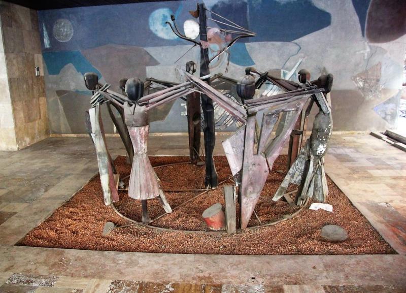 En els laterals de l'entrada del teatre es poden admirar aquest murals encarregats a Josep Guinovart que porten el títol de Festival i Titelles respectivament.