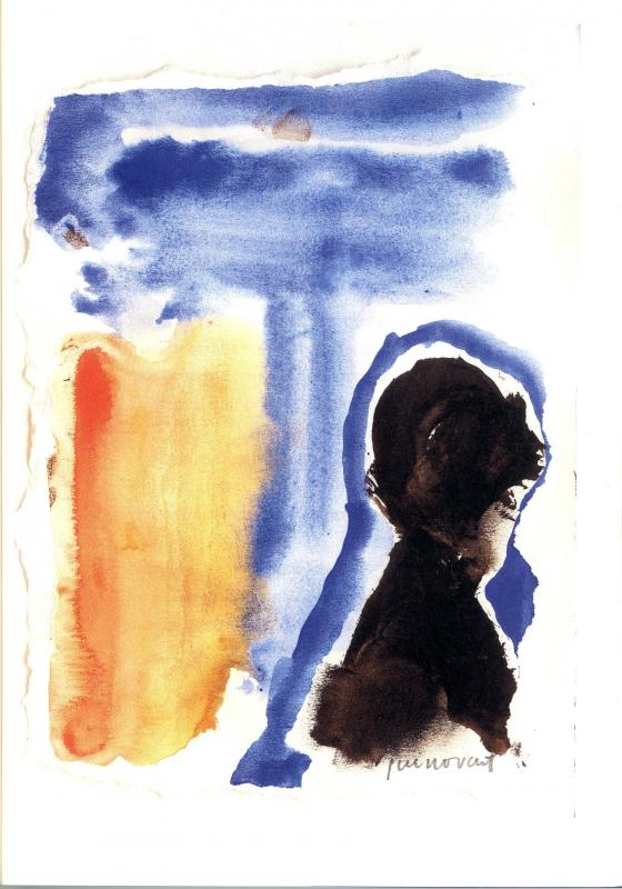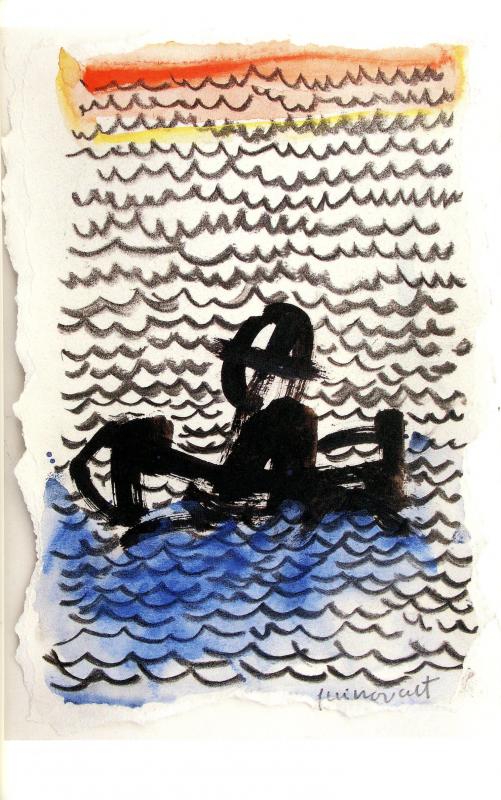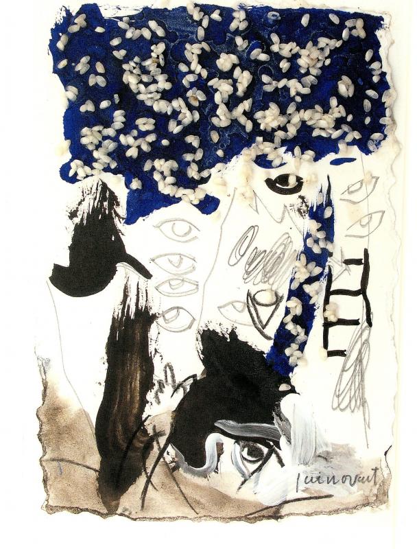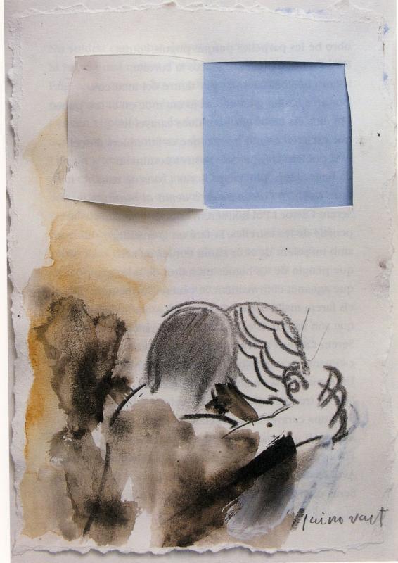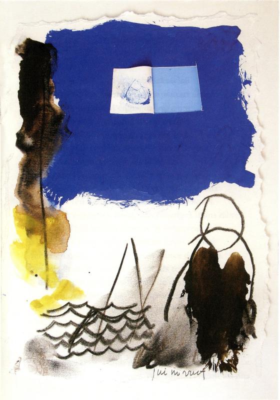 Il·lustra portada del llibre de poesies de Xavier Bru de Sala " Fràgil ", editat per Ensiola Editorial, de Muro ( Illes Balears) 2003, En el interior hi han set il·lustracions més de Guinovart