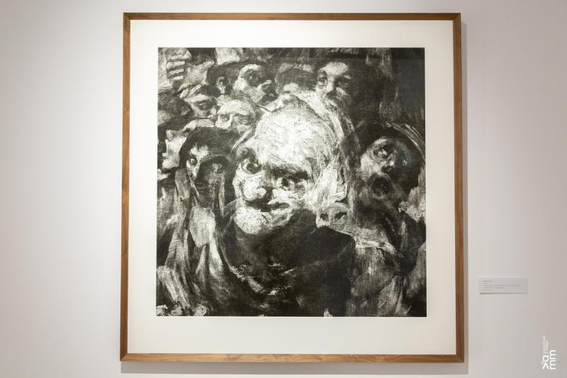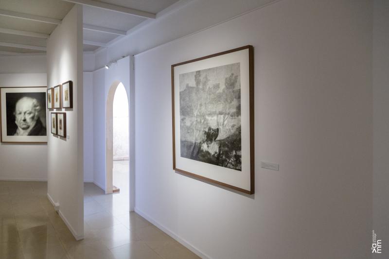 La tesi central de l’exposició és que, malgrat les evidents distàncies temporals i estilístiques, un “traç negre” connecta l’obra gràfica de Goya, Guinovart i García-Alix. Aquest fil conductor no és una influència directa, sinó una afinitat espiritual i una visió compartida del món. Els tres artistes, cadascun amb el seu llenguatge, han utilitzat el blanc i negre no com una absència de color, sinó com una eina per intensificar el drama, la textura i la veritat. Goya, amb els seus Capritxos i Disbarats, va inaugurar una modernitat crítica que esbocina les convencions per mostrar el grotesc i l’inconscient col·lectiu. Segles després, Guinovart recull aquesta herència de rebel·lia en els seus gravats, on el gest abstracte i la matèria es converteixen en un crit, un paisatge interior esquinçat que reflecteix les ferides de la guerra. Finalment, la incorporació de l’obra de García-Alix es centra en la seva singular sèrie fotogràfica realitzada a l’interior del Museu del Prado, durant les hores nocturnes. Aquestes imatges no són simples documentacions, sinó meditacions visuals on l’artista es confronta amb els mestres (incloent-hi Goya) en la intimitat del museu buit.