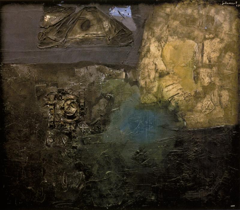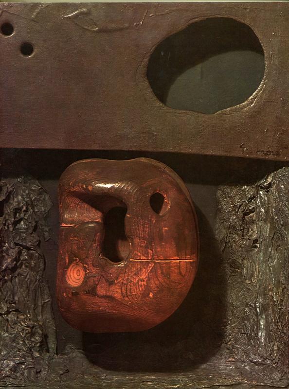 • 1962. Collage. Te脤鈧琧nica mixta i collage sobre fusta 244x122 cm. Col路leccio脤聛 Amics del centre Reina Sofia (Privat)