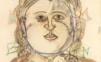 • 1954. Cap de dona (Revers de l'obra crani) Oli i llapis grafit sobre tela. Col路leccio脤聛 Museu Nacional d'Art de Catalunya (P煤blic)