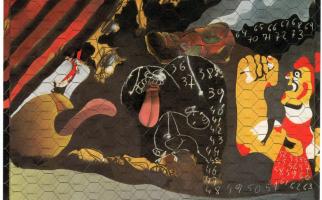 • 1975. Les quatre fases. T猫cnica mixta sobre fusta 244x195 cm. Col路leccio脤聛-particular. (Privat)